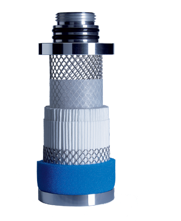 Cartouche de filtration terminale en polypropylène pur, adaptée à la filtration de liquides aqueux et organiques.